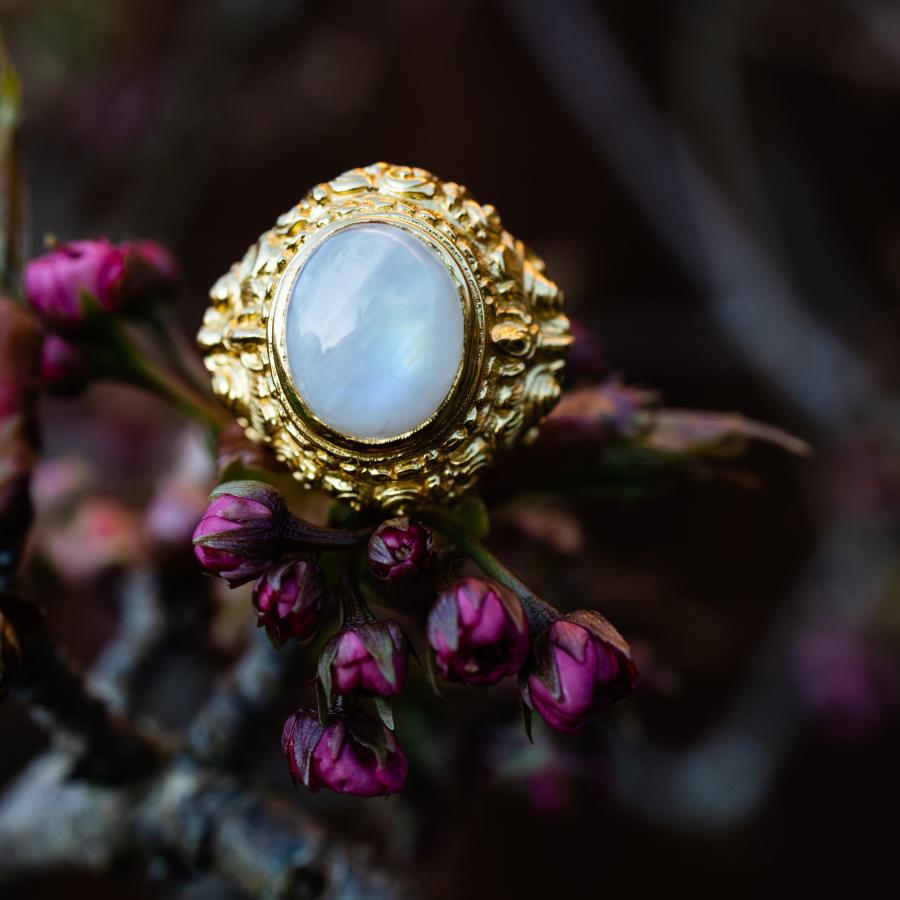 Pierścionek z najwyższej jakości AAA kamienia księżycowego tęczowego